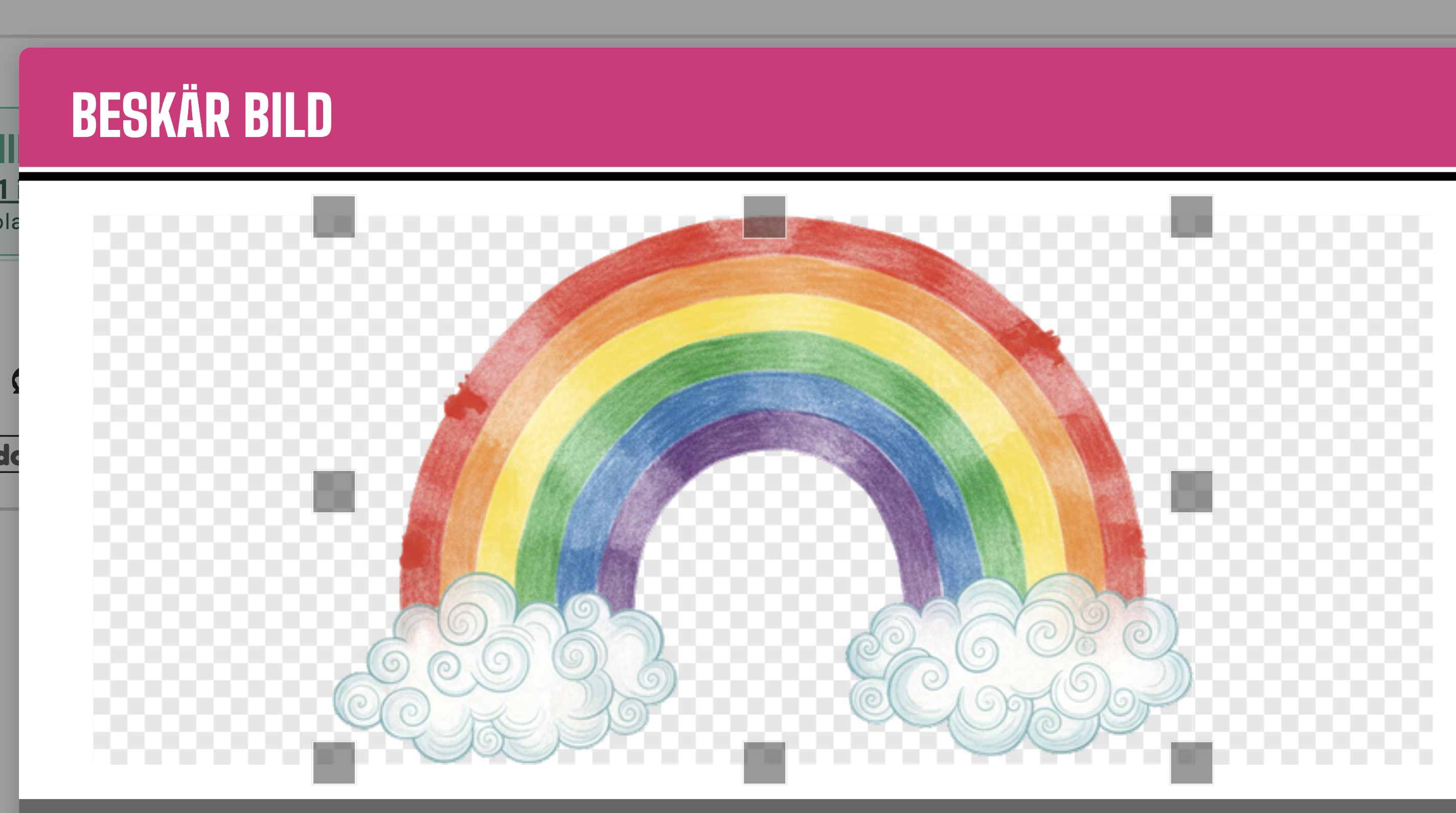 Om du märker att du inte kan fortsätta när du redigerar en design. Till exempel när du beskär en bild och din skärm ser ut så här: